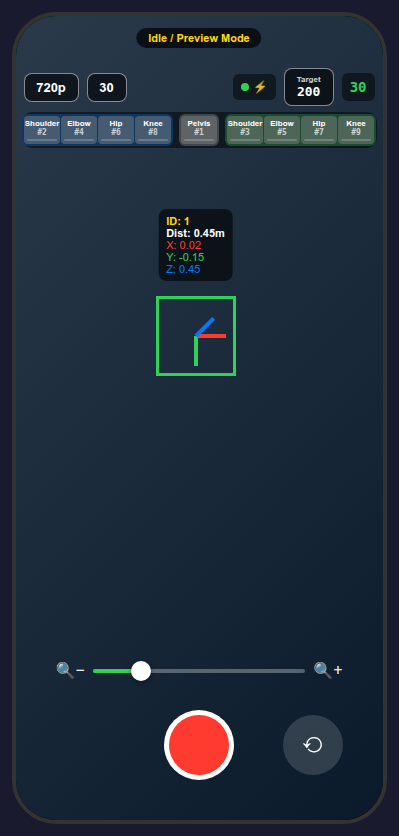video_YYYYMMDD_HHMMSS.mp4: H.264-encoded calibration videometadata_YYYYMMDD_HHMMSS.json: per-frame metadata including timestamps, intrinsics, and AprilTag detections